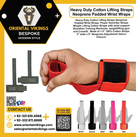 Heavy Cotton Lifting Straps Neoprene Padded Wrist Wraps